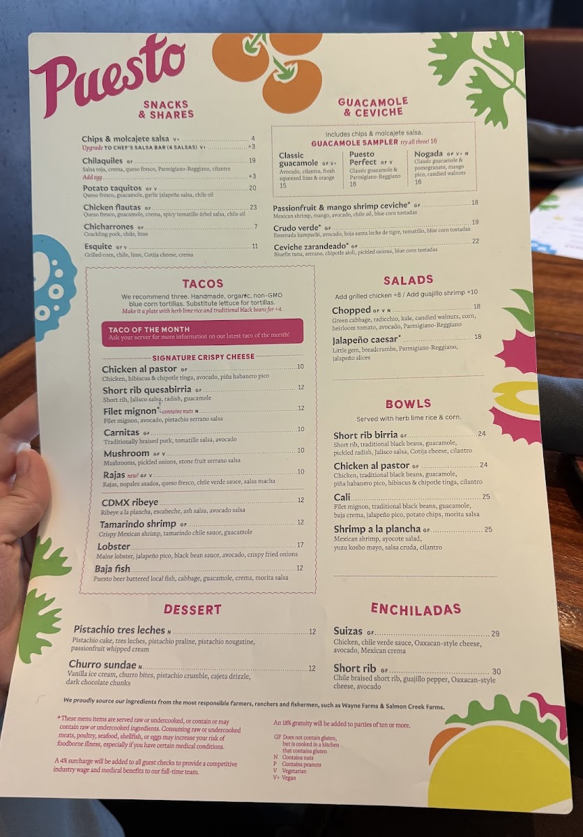 Known for its dynamic menu, Puesto impresses with a variety of delicious offerings, like their classic Chips and Salsa, featuring fire-roasted molcajete salsa served with freshly made tortilla chips. The Catering Guacamole, a creamy blend of avocado, cilantro, and onions, sets the perfect stage as a starter, allowing guests to share in its refreshing flavors while enjoying the crispy textures of tortillas. For a robust main dish, the Catering Birria Tacos are a standout, showcasing tender, braised short rib paired with jalisco salsa, diced onions, and handcrafted blue corn tortillas that will leave you craving more.