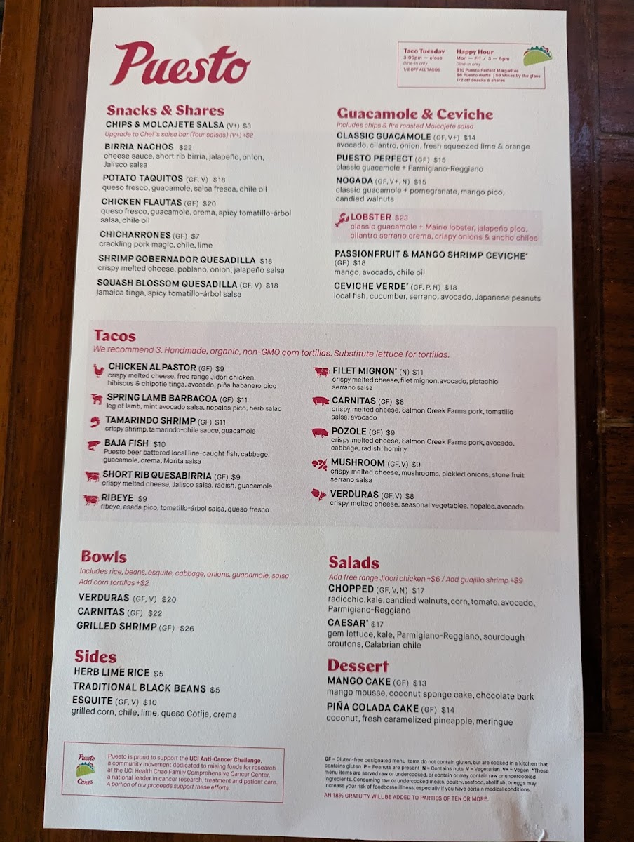 Puesto Los Olivos isn’t just a meal; it’s an experience filled with engaging flavors and complimentary service. Whether you're in the mood for a refreshing Cocktail—like their noted Cadillac Margarita—or indulging in the culinary delights of the Catering Burrito Box filled to the brim with savory options, this restaurant caters to every palate. So, when you find yourself in Irvine, treat yourself to an evening at Puesto—you won't just leave with a satisfied appetite; you'll carry home vibrant memories and perhaps even a few new friends.
